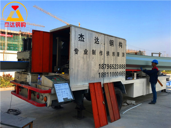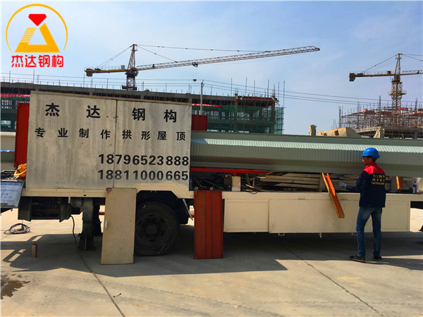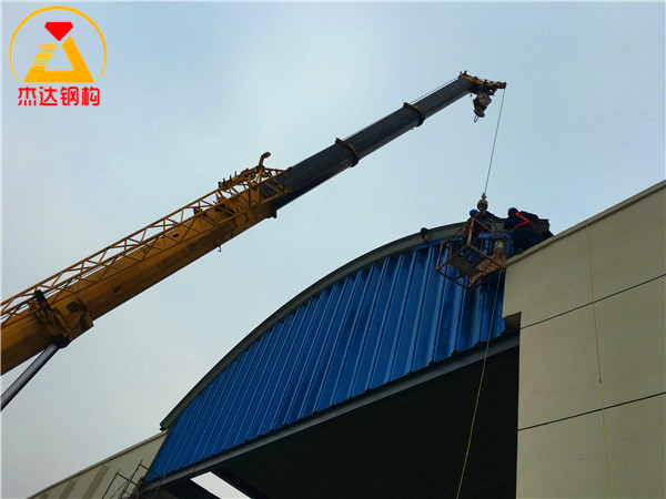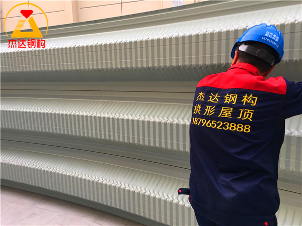 本次工程由杰達鋼構團隊全面負責,包括拱形屋頂?shù)?strong>壓型制作與安裝作業(yè),三道通長采光帶的布局,以及兩側山墻瓦的壓型安裝等關鍵環(huán)節(jié)。施工過程規(guī)范,工期緊湊,自2024年4月2日正式開工,于4月14日順利竣工。