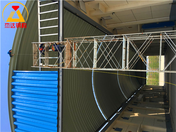 江蘇杰達鋼結構工程有限公司在該項目中嚴格按照施工規(guī)范執(zhí)行各項流程,充分展現(xiàn)出企業(yè)在拱形屋頂施工領域的專業(yè)能力與責任擔當,為當?shù)丶Z食儲備體系建設提供了穩(wěn)定可靠的保障。