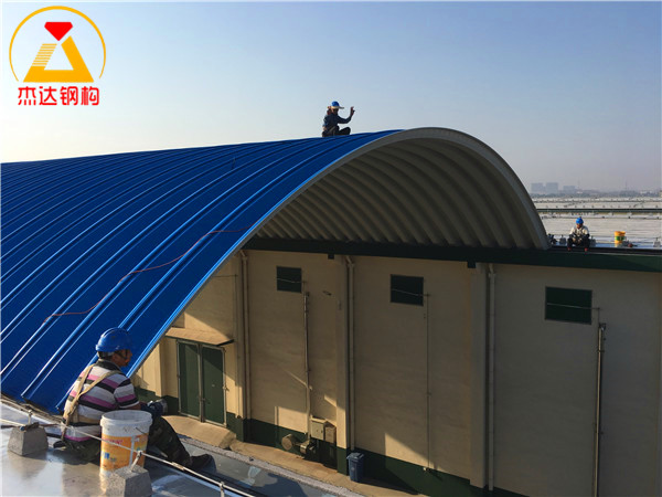 項(xiàng)目中,江蘇杰達(dá)鋼結(jié)構(gòu)工程有限公司負(fù)責(zé)拱形屋頂波紋鋼屋蓋的安裝勞務(wù),確保結(jié)構(gòu)的質(zhì)量與施工安全。采用高強(qiáng)度材料和精確的焊接工藝,為屋頂提供了堅(jiān)固的支撐。
