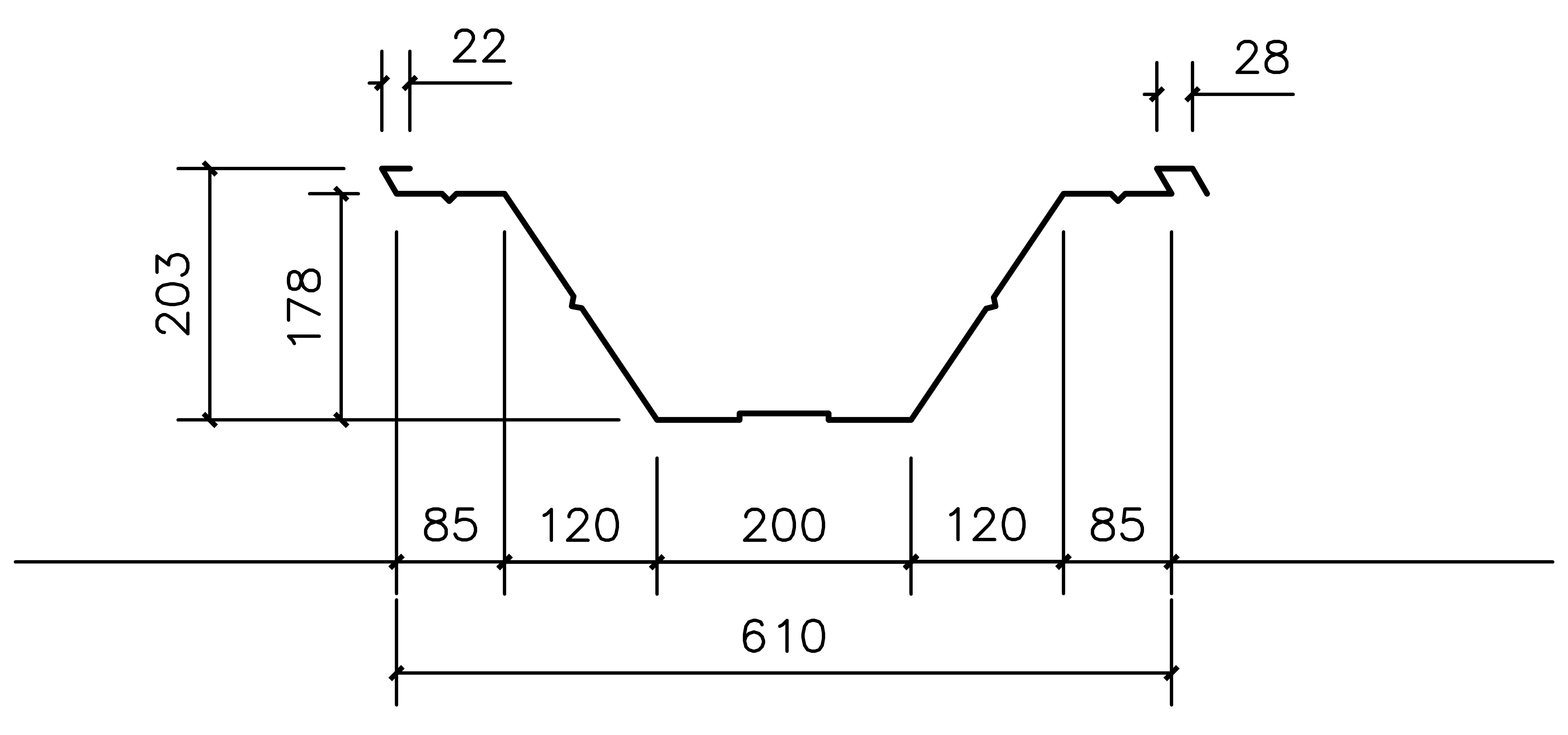 該設(shè)備適用彩鋼板寬度為914毫米,成型后的出板寬度為610毫米。成型過(guò)程中使用14道輥,輥材質(zhì)為40Cr淬火加硬鉻處理,軸采用鍍鋅的45鋼材料,切割方式為輥壓成型與定長(zhǎng)切割相結(jié)合,確保材料利用率達(dá)到66.7%。