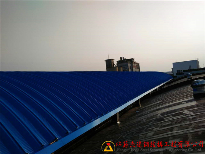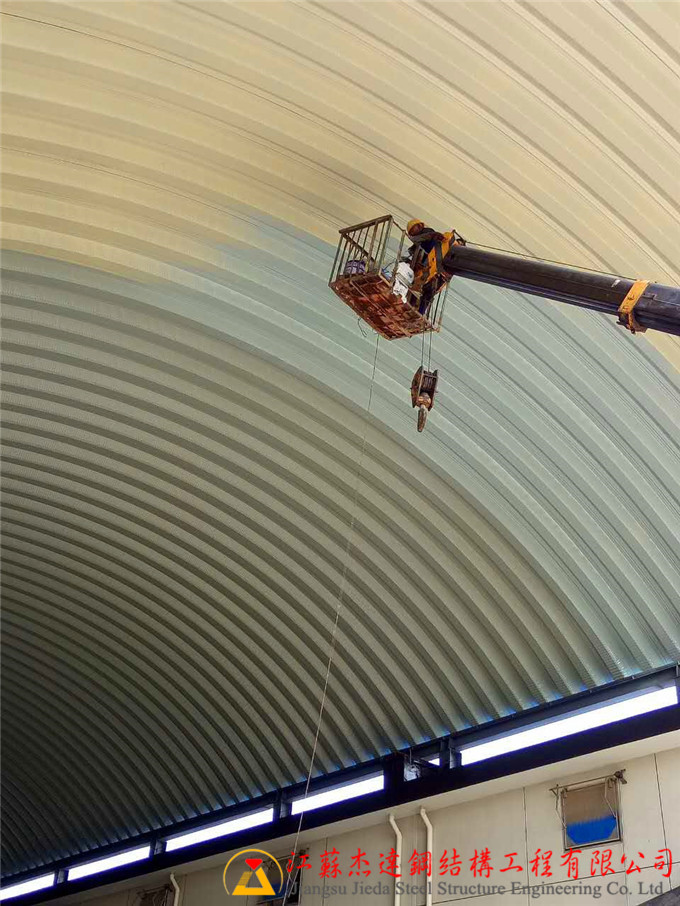 本工程為江蘇揚(yáng)州市邗江區(qū)公道糧庫(kù)拱形屋頂倉(cāng)間罩棚制作安裝,施工周期短,質(zhì)量可靠,滿足倉(cāng)儲(chǔ)功能需求。