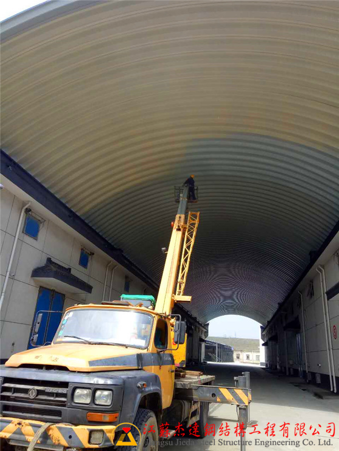 工程名稱:江蘇省揚(yáng)州市邗江區(qū)公道糧庫(kù)拱形屋頂倉(cāng)間罩棚制作安裝工程