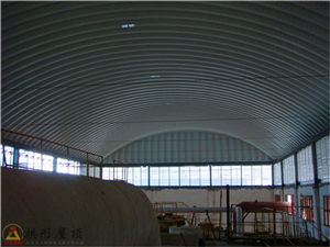 拱形屋面結(jié)構(gòu)是采用國際先進的配套設(shè)備,一般0.61.5㎜厚專用914寬度彩涂成卷鋼板為原料,經(jīng)過壓板、鎖邊、吊裝后成型的大跨度屋面結(jié)構(gòu)。它設(shè)計施工周短、投資少、施工快,廣泛適用于混凝土攪拌站料棚、工業(yè)廠房、倉儲庫房、車庫、機庫等。