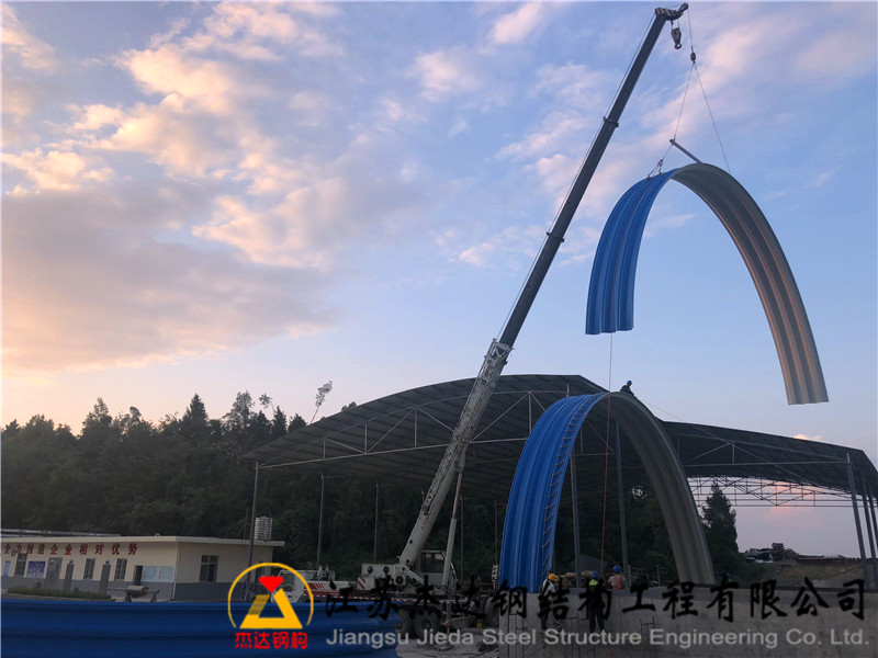 本工程位于重慶豐都重水礦山內(nèi),采用拱形屋頂設(shè)計(jì),結(jié)合礦區(qū)特殊環(huán)境,體現(xiàn)了鋼結(jié)構(gòu)施工的實(shí)用與美觀兼顧。